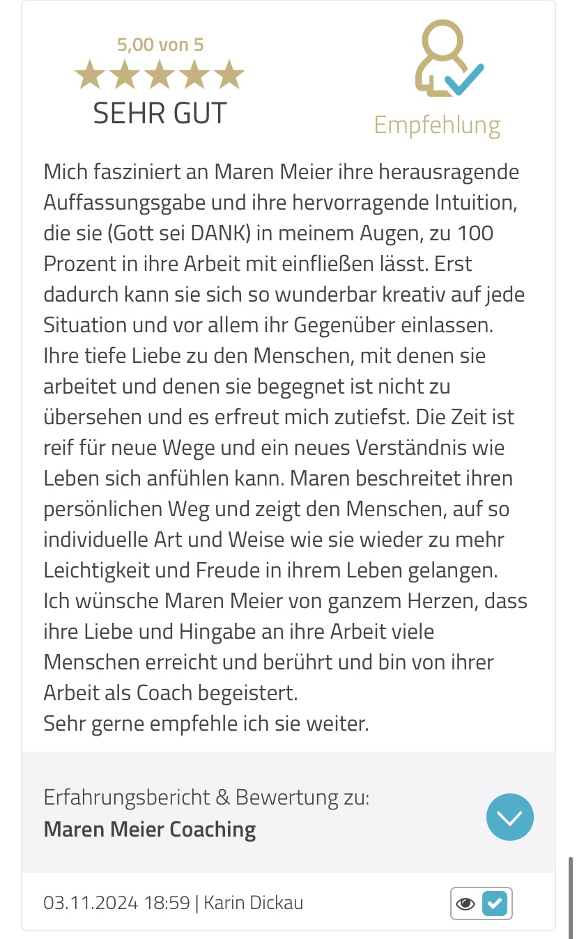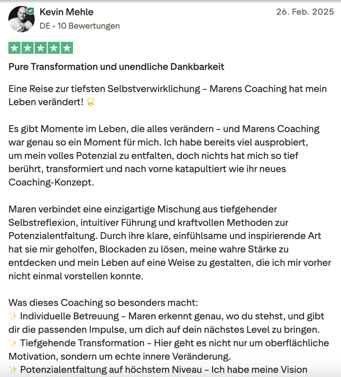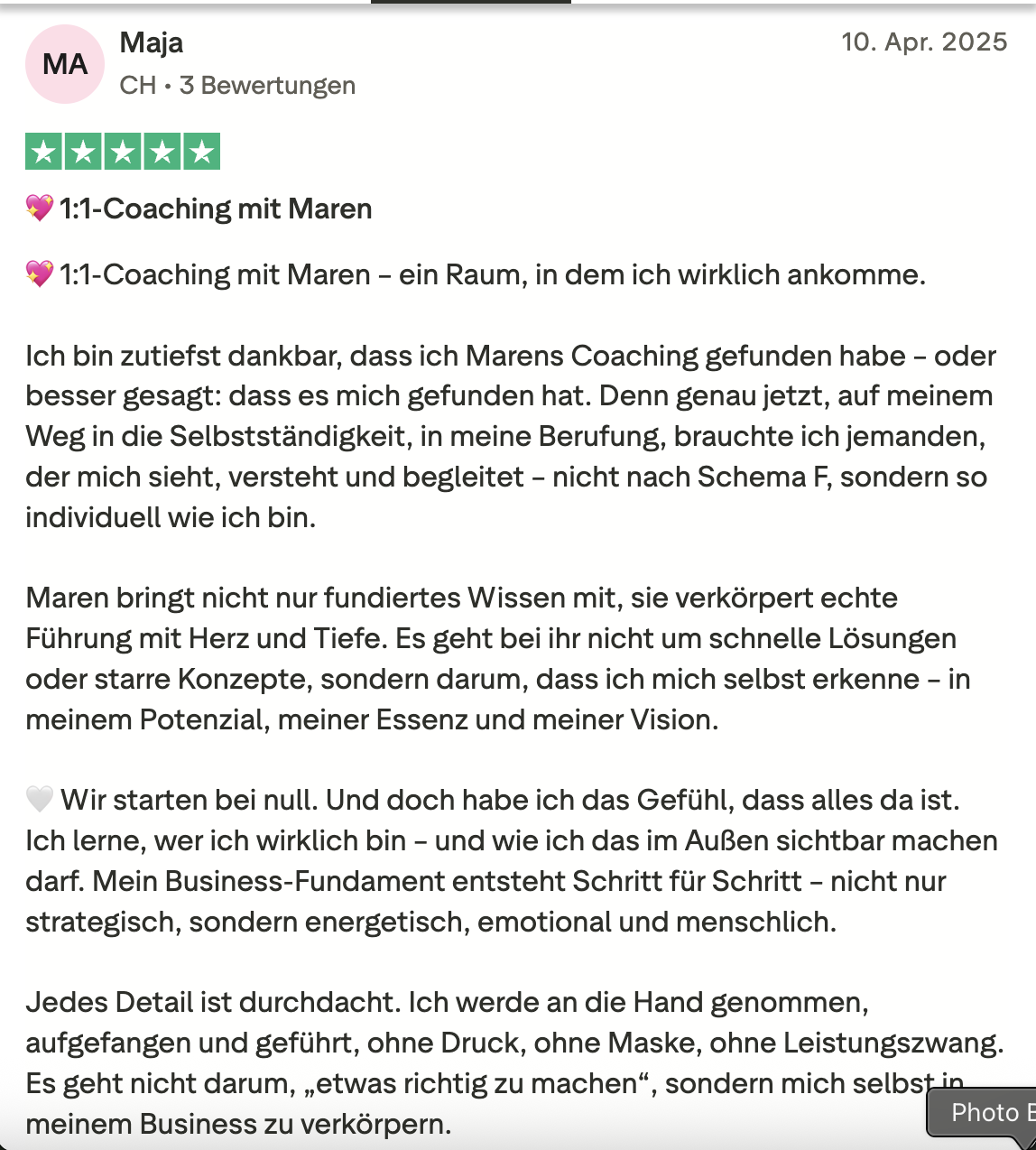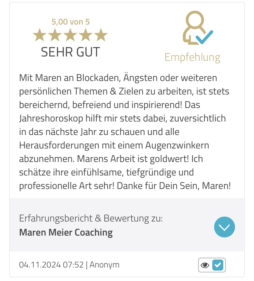 Ich heiße Maren – Mentorin für Berufung und tiefe Prozessbegleitung für Menschen, die spüren, dass da mehr in ihnen schlummert, als sie bisher leben. Es gab eine Zeit, in der ich mich selbst zurückhielt. Ich fühlte mich, zu feinfühlig, zu tief, zu viel für diese Welt. Aber genau das hat mich auf meinen Weg geführt: Raus aus dem Funktionieren – hinein in meine Berufung. Heute weiß ich: Berufung ist kein Ziel im Außen. Sie beginnt dort, wo wir bereit sind, unter unsere Schutzmechanismen zu fühlen – und unser Herz wieder weit zu öffnen, auch wenn es sich unsicher anfühlt.